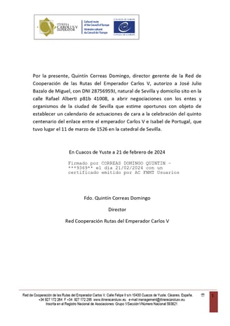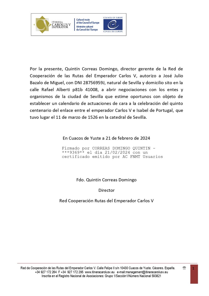 Encargo del Consejo de Europa, Ruta de Carlos V, para la conmemoración de los esponsales de Carlos V con Isabel de Portugal en Sevilla.